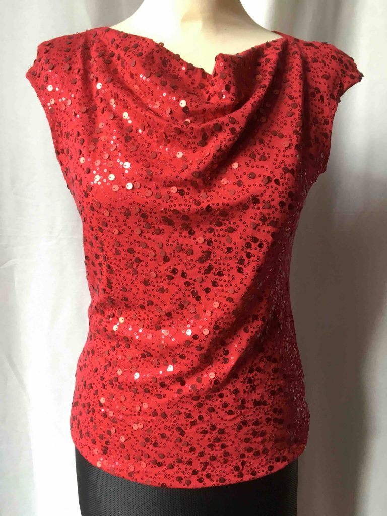 Shirts und Kleider aus Pailletten-Viskosejersey. Gemütlich, wasch (30 Grad)- und vor allem tanzbar.